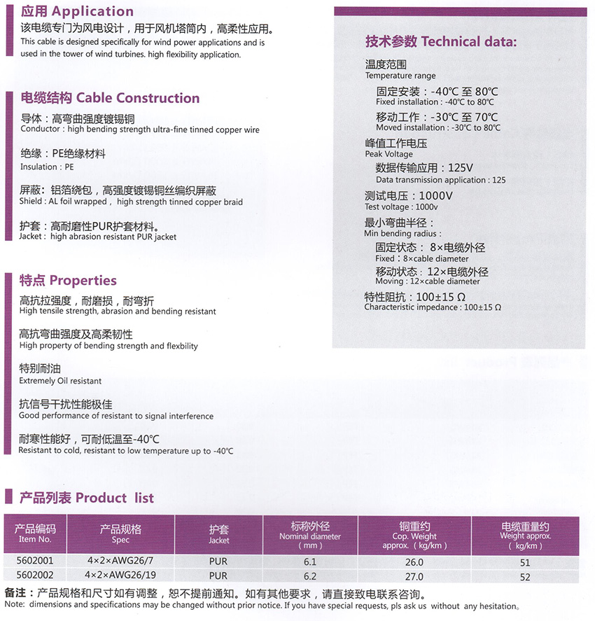 风能数据电缆 CAT5e