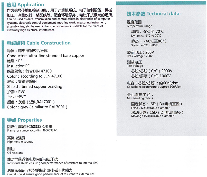 柔性数据传输屏蔽电缆 Li2YCY-TP